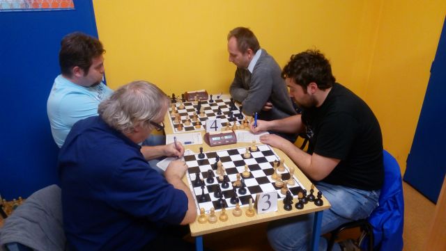 FEN: 8/8/2R5/p7/Kb4r1/3k4/8/8 b - - 0 63 63..Vc4?? 64.Vxc4 ½, protože po dobrání věže je překvapivě pat. Chudák pan Sochor. Tipl bych si, že z hrací místnosti odcházel v ještě mizernější náladě než já. Vzhledem k průběžnému stavu 5:2 se následně Vláďa nesnažil uplatnit svého pěšce navíc a džentlmensky nabídl remízu, aby spoluhráče nezdržoval. Zápas tak skončil naším zaslouženým vítězstvím 5½ : 2½. Jak to viděli soupeři, si můžete přečíst ZDE. ![]() Kapitán s více než čtvrthodinovým předstihem vzorně připravil hrací místnost. ![]() Luxusní dřevěnou šachovnici s krásnými novými klubovkami zapůjčenou ze svazu z ušlechtilého důvodu oslavy šachu, se nám podařilo se soupeřem pěkně znectít. Pro příště se raději spokojím s poškrábanou plátěnou šachovnicí a postaršími oprýskanými figurami, které budou lépe odpovídat mé skřípající úrovni hry 😒 ![]() Honza stále věří v zázrak. ![]() Vláďa je džentlmen. ![]() Adam ošálil útočného pana Korsu. František Štross ml., 23. 1. 2016 19:11 | aktualizace: 25. 4. 2016 12:17